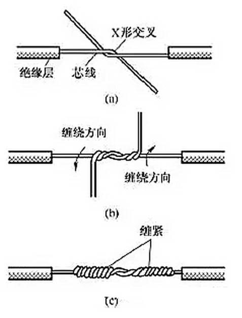 (1)單股銅導(dǎo)線的直接連接。小截面單股銅導(dǎo)線連接方法如圖1所示,先將兩導(dǎo)線的芯線線頭作X形交叉,再將它們相互纏繞2~3圈后扳直兩線頭,然后將每個線頭在另一芯線上緊貼密繞5~6圈后剪去多余線頭即可。lQo拖鏈電纜-聚氨酯卷筒電纜-高柔性坦克鏈電纜廠家