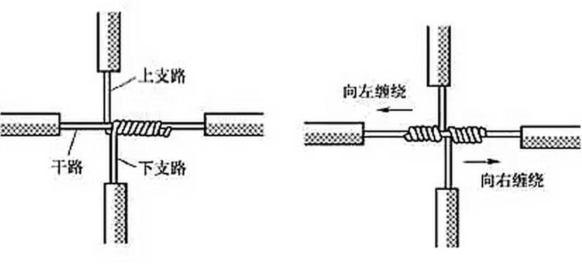 (2)單股銅導(dǎo)線的分支連接。單股銅導(dǎo)線的T字分支連接如圖4所示,將支路芯線的線頭緊密纏繞在干路芯線上5~8圈后剪去多余線頭即可。對于較小截面的芯線,可先將支路芯線的線頭在干路芯線上打一個環(huán)繞結(jié),再緊密纏繞5~8圈后剪去多余線頭即可。lQo拖鏈電纜-聚氨酯卷筒電纜-高柔性坦克鏈電纜廠家