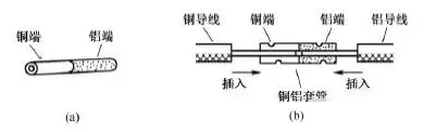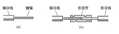 另一種方法是將銅導(dǎo)線鍍錫后采用鋁套管連接。由于錫與鋁的標準電極電位相差較小,在銅與鋁之間夾墊一層錫也可以防止電化腐蝕。具體做法是先在銅導(dǎo)線的芯線上鍍上一層錫,再將鍍錫銅芯線插入鋁套管的一端,鋁導(dǎo)線的芯線插入該套管的另一端,最后壓緊套管即可,如圖16所示。lQo拖鏈電纜-聚氨酯卷筒電纜-高柔性坦克鏈電纜廠家